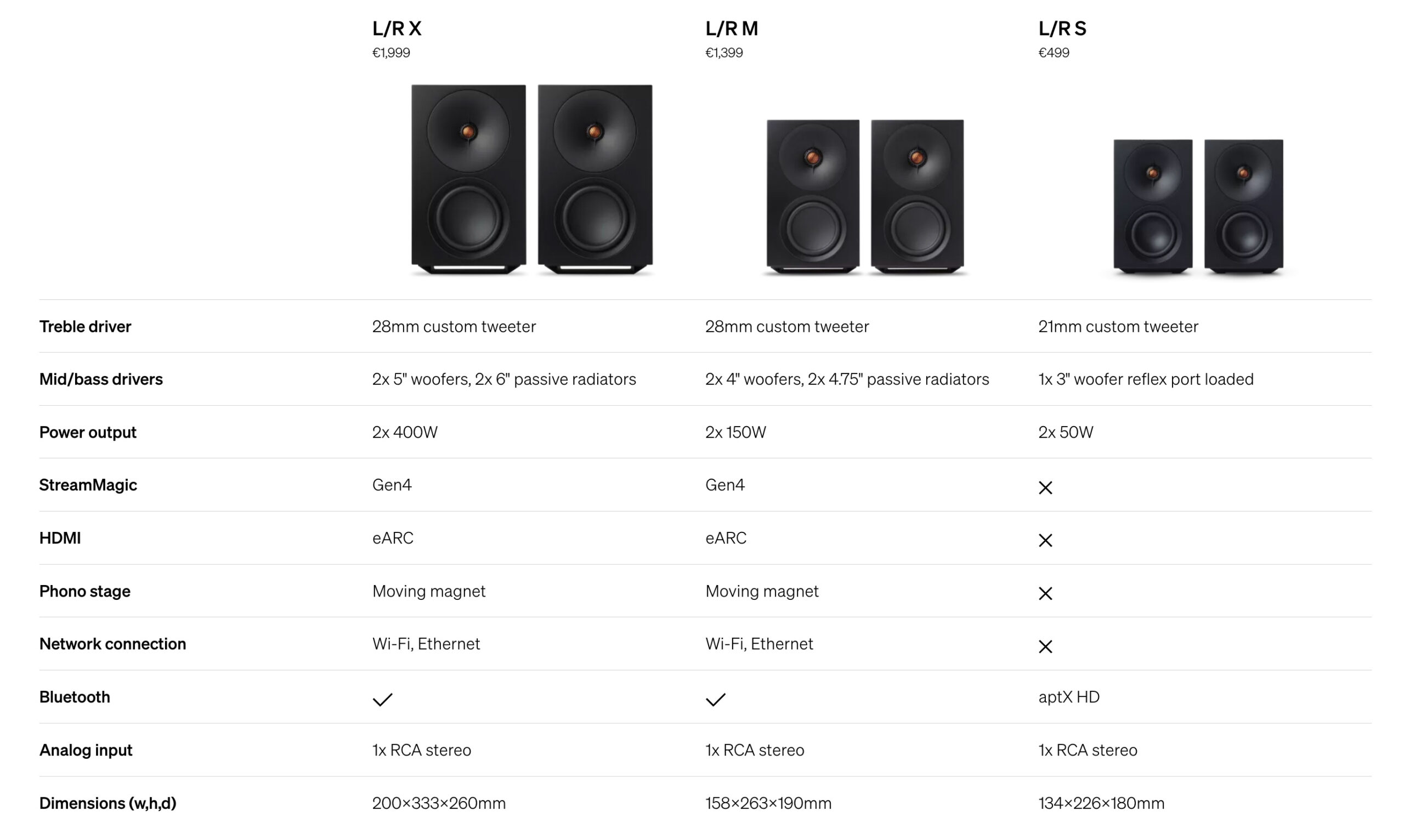 L/R X i L/R M su modeli sa StreamMagic tehnologijom, koja putem aplikacije omogućuje izravan i jednostavan pristup glazbenoj biblioteci i uslugama streaming servisa. Dizajnirani su za sve one koji žele potpunu konfiguraciju bez dodavanja dodatnih audio komponenti.